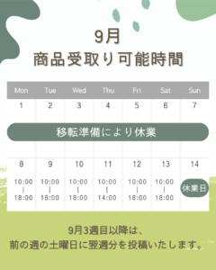 \ 📅 9月の商品お受取り可能時間のお知らせ /